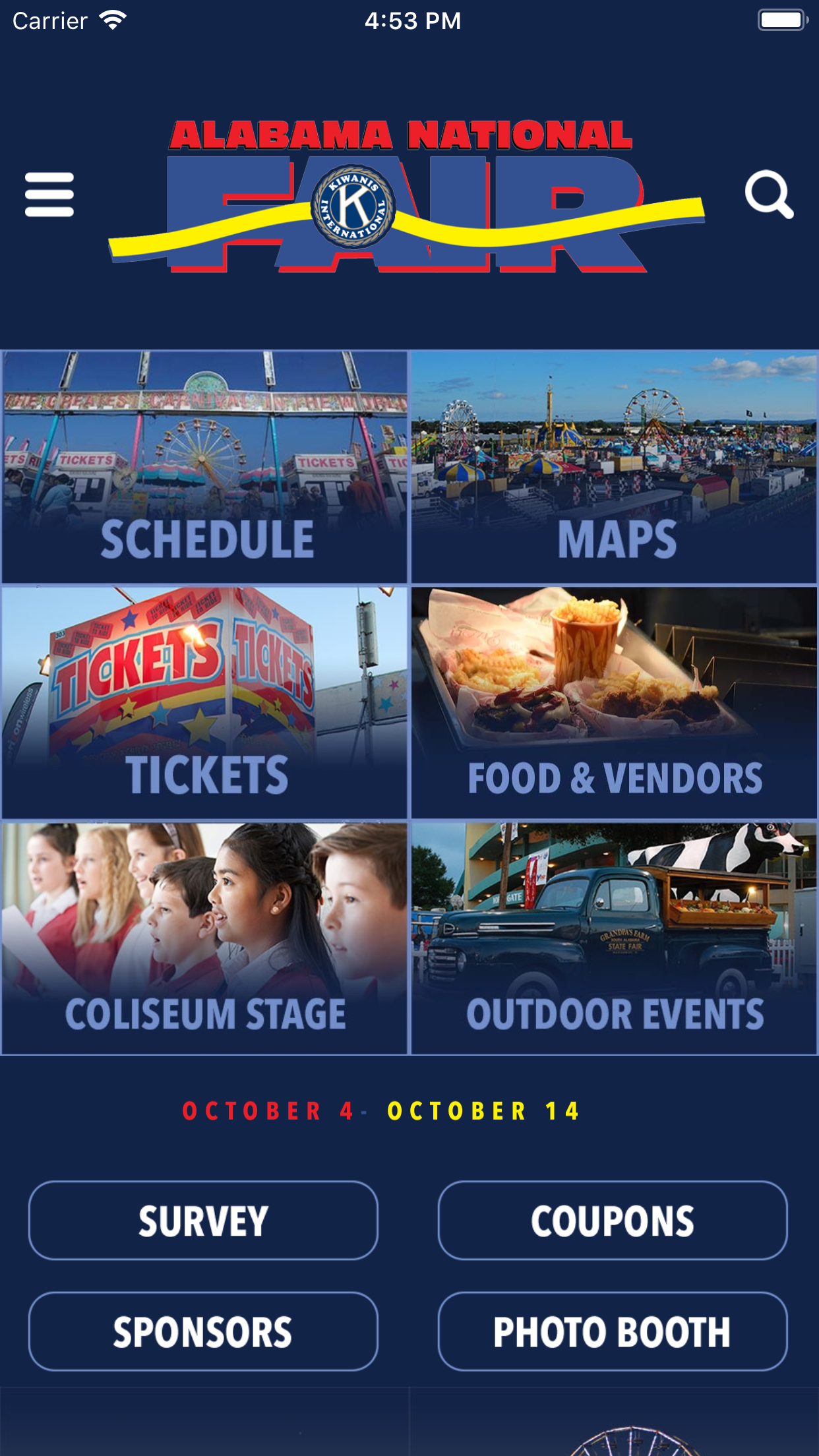 DAILY EVENT SCHEDULE Download our free APP to get a detailed schedule of events for each day of the Alabama National Fair. Go to your App Store and download Alabama National Fair